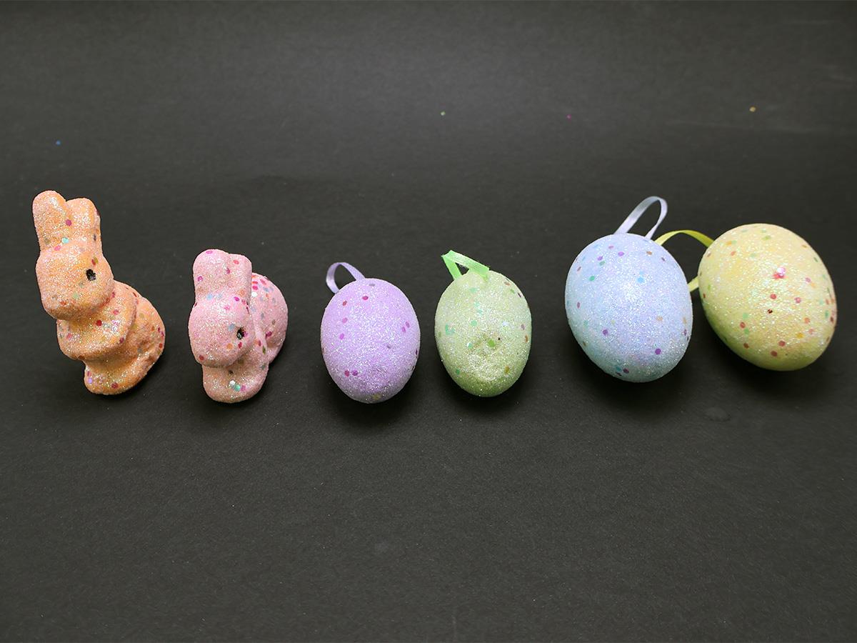 RYN Easter Foam 2 Glittered Rabbit + 4 Glittered Eggs Assorted Colors G2025-108