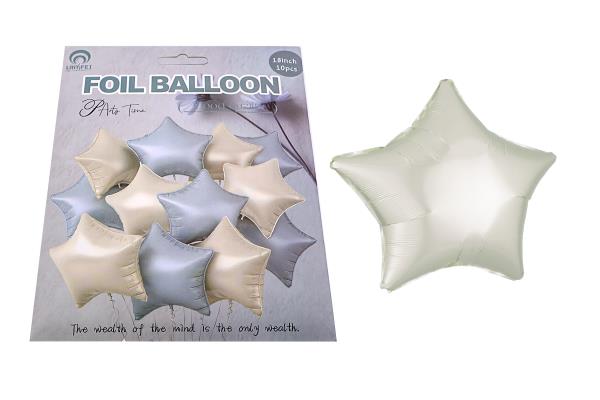 RYN Foil Balloon 18inch 10/Bag Blue And White Star 22.5*17cm