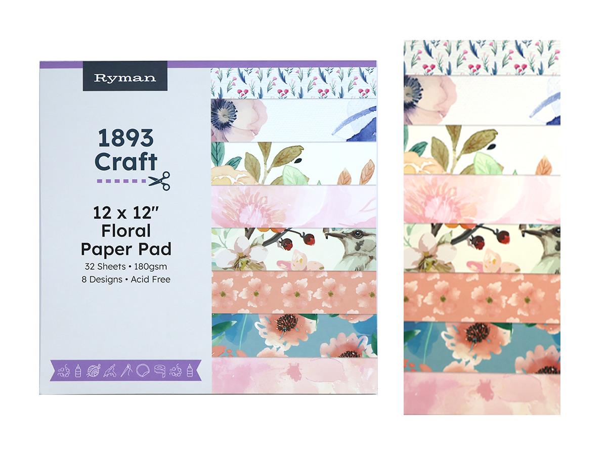 Ryman Floral Paper Pad 8 Designs 32 Sheets 180gr 30*30cm