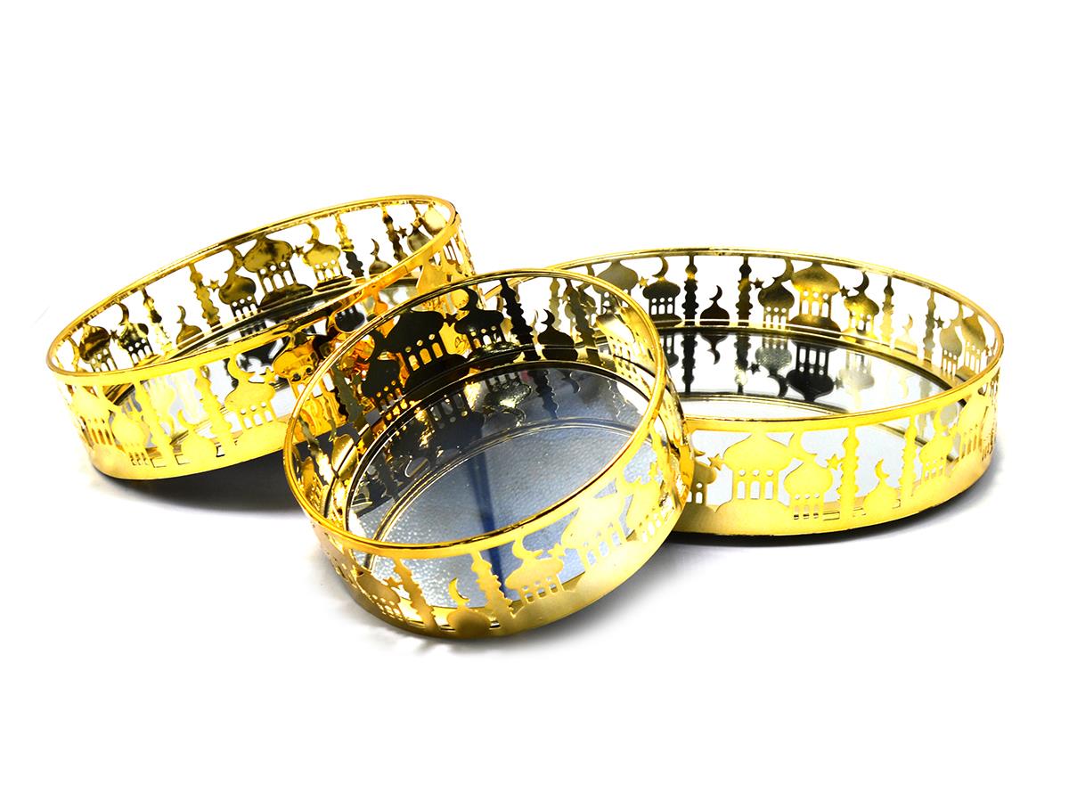 RYN Ramadan Metal Tray Set Of 3 With Mirror 15cm+20cm+25cm