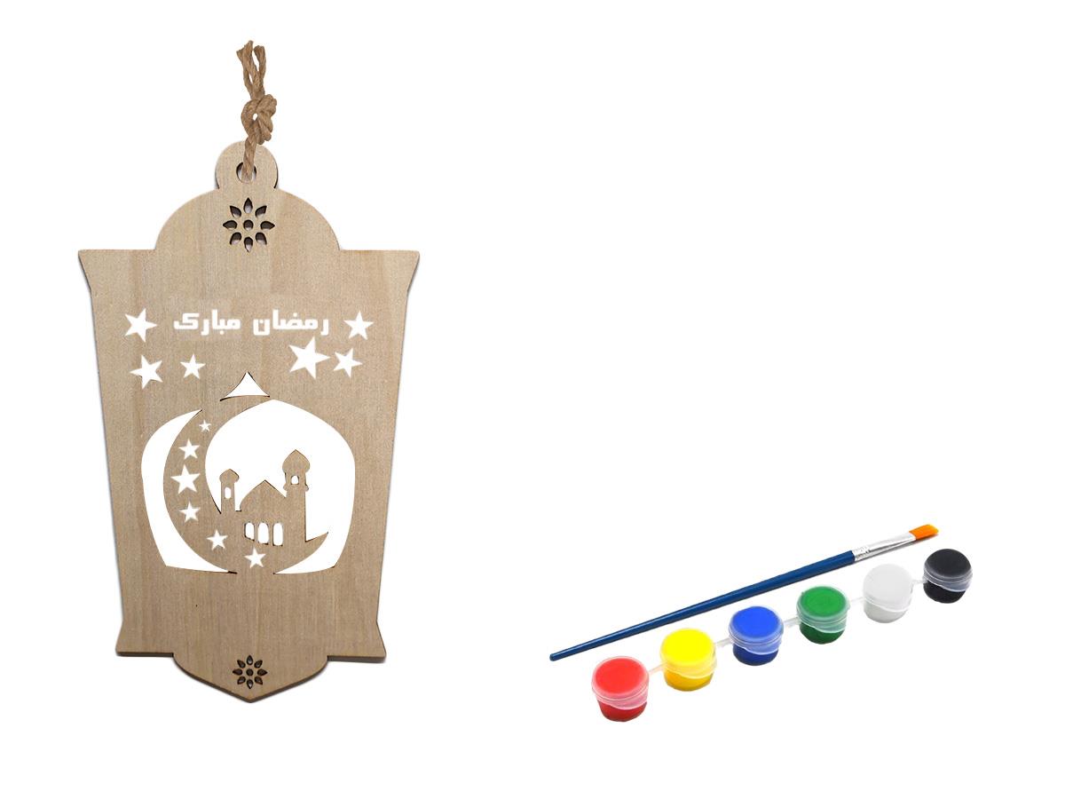 RYN Ramadan Plywood Decoration Lantern With 6 Acrylic Colors + Brush 21.5*13*0.2cm