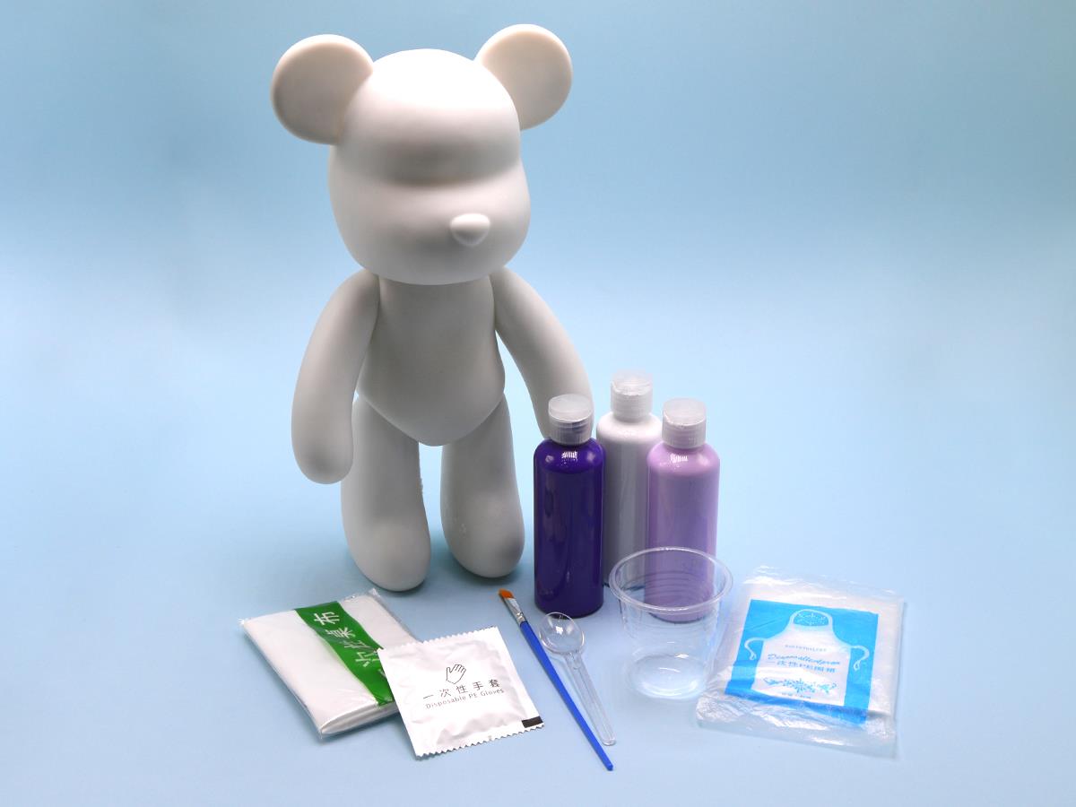 Plastic Bear 32cm With 3 Acrylic Colors Set 100ml with Brush Spoon Cup Apron Gloves Table Cover