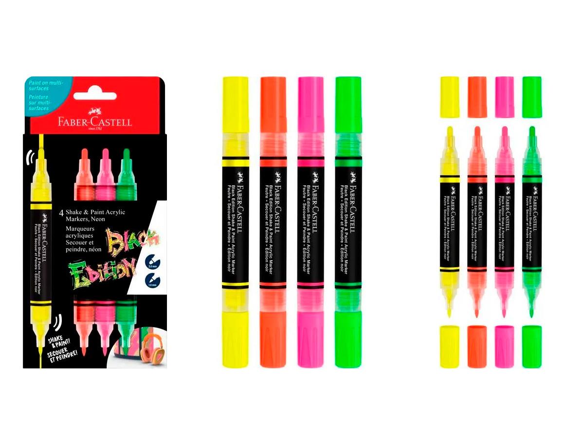 Faber Castell Shake & Paint Acrylic Markers Neon Colours Multi-surfaces Paint 4pc