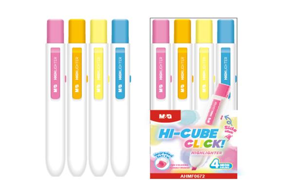 M&G Highlighter Pen Hi Cube Click Set Of 4 Color Neon