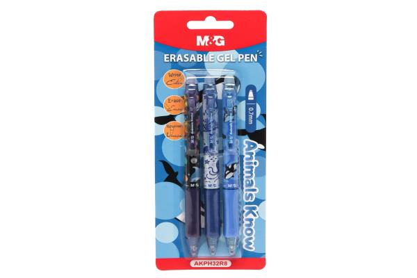 M&G Erasable Gel Pen 0.7mm Set Of 3 Pcs On Blister Animals Know