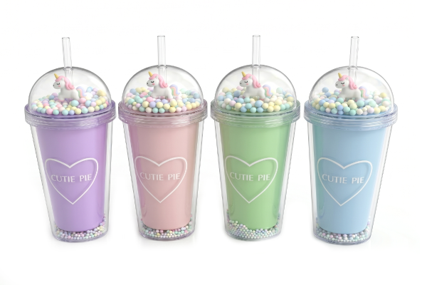 Plastic Cup 380ml With Straw