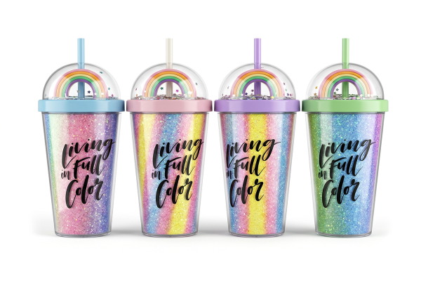 Plastic Cup 380ml With Straw