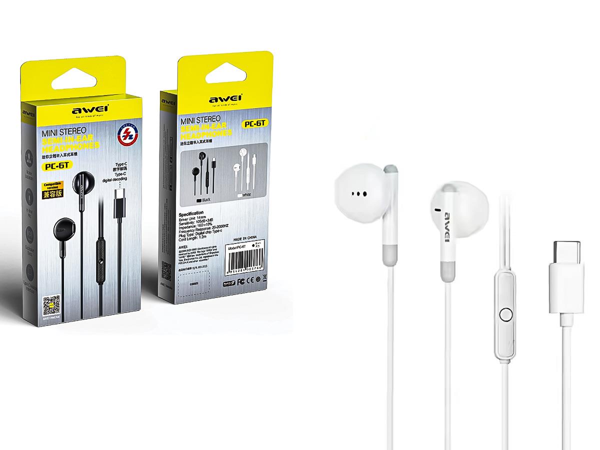 Awei Earphone W/Microphone Type-C White PC6T