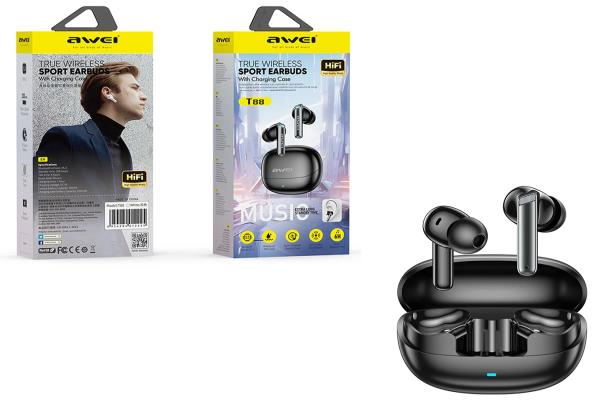 Awei Earbuds BT W/Charger Case Case Black T88